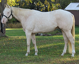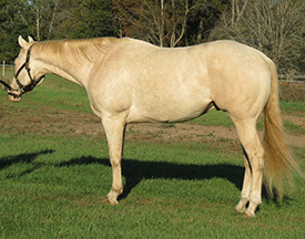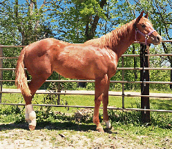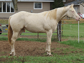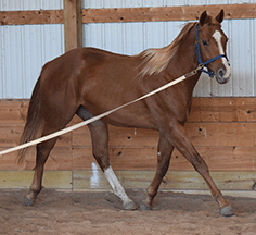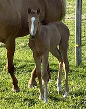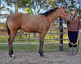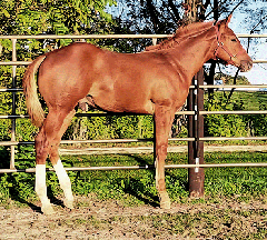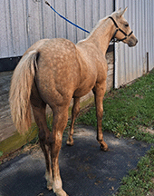 “He is a big, pretty boy! He has great conformation & hip. He should be able to carry my 6’2” 250 lb. husband well.”
